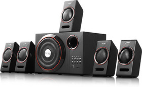 Built to look good, these speakers come with a black matte look and sport heavy duty metal grill to add a rugged finish. They also have red ring decoration. It's not all about the looks - the speakers have user-friendly controls on the front panel and comes with a full function remote control in fluorescent as well.